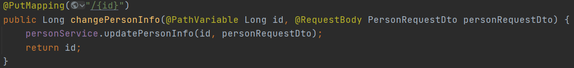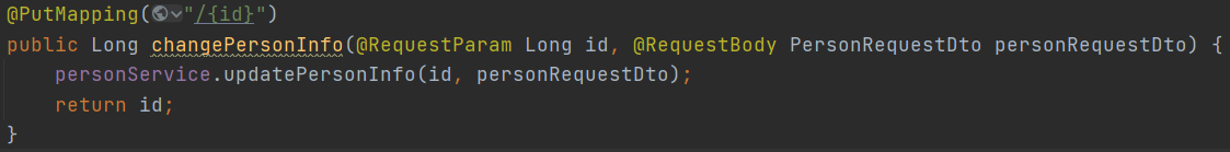 이 때 PutMapping의 경우 @PutMapping("/api/{id}) 등으로 작성합니다.