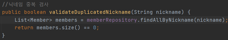 분명히 select m from Member m where m.nickname = :nickname 쿼리에서 결과 로우가 한 개 나와야 하는데 0개로 나오는 문제였습니다. findAll()을 사용한 경우 결과 로우가 나오는 것을 봤을 때, 쿼리가 잘못 되었거나 파라미터 변수에 잘못된 값이 들어온 것이라는 두 가설을 세웠습니다.