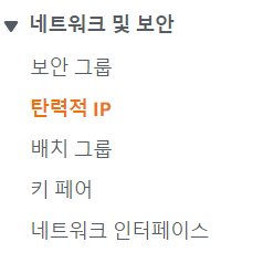 좌측 탭에서 네트워크 및 보안 - 탄력적 IP를 선택한다.